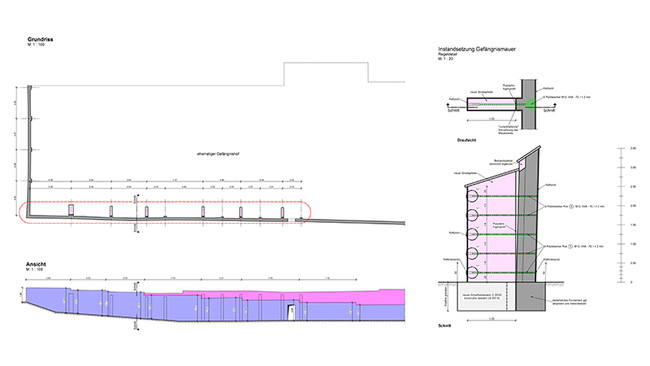 Im Rahmen der Standsicherheitsprüfung durften wir zur Instandsetzung der Gefängnismauer in Kaufbeuren folgende Leistungen ausführen:
