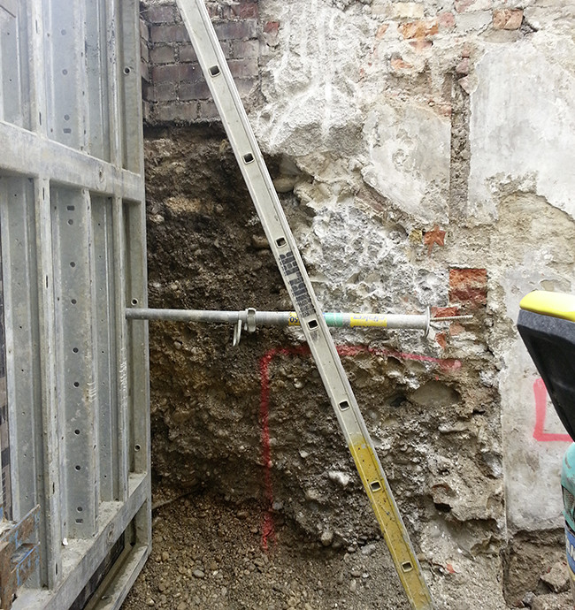 Horizontale Abstützung der angrenzenden Nachbargebäude,